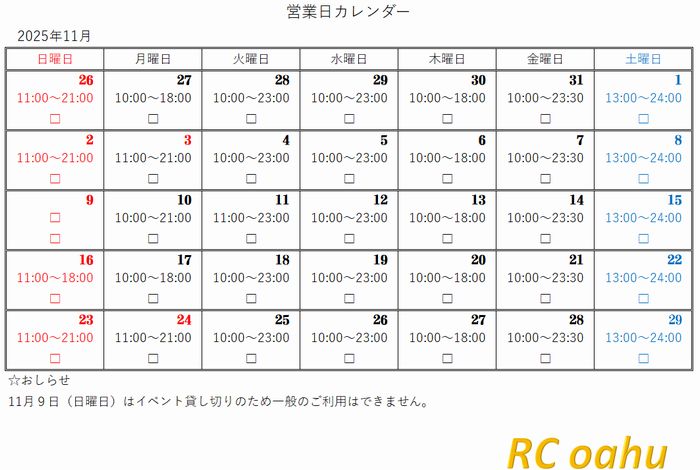 営業日&営業時間