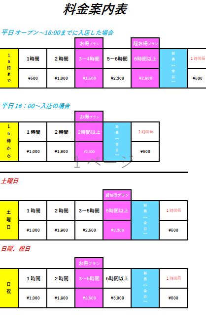 ※ 保護者の方のご利用時間内のみ、12歳以下のお子様は無料とさせていただきます。